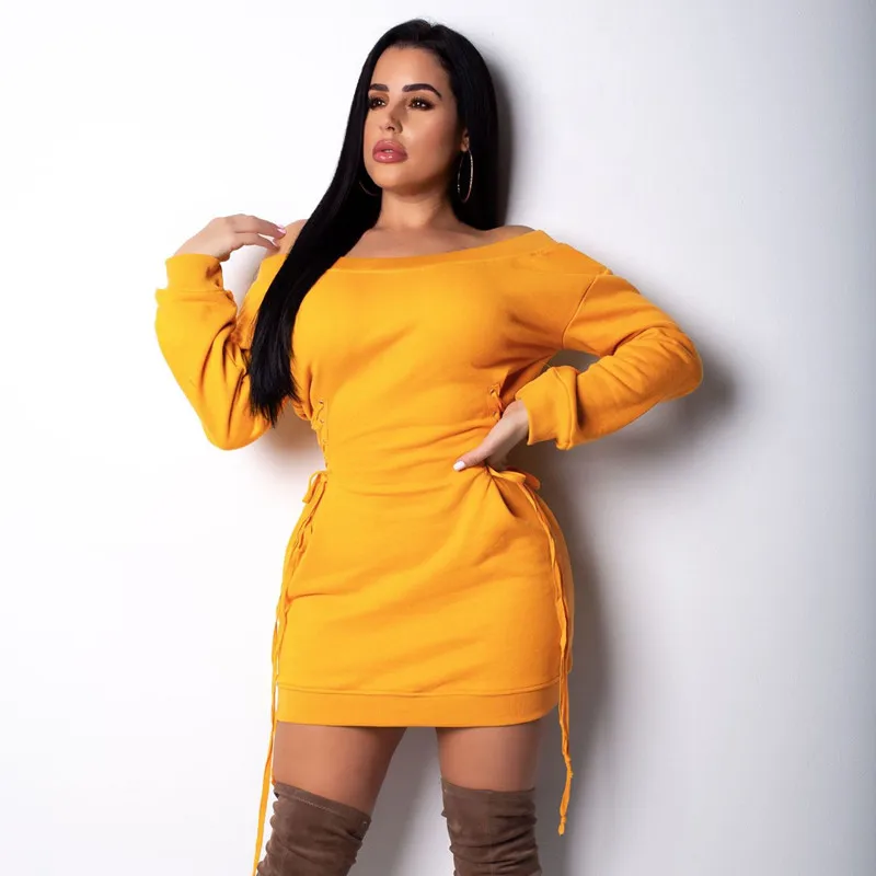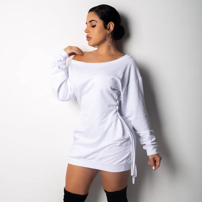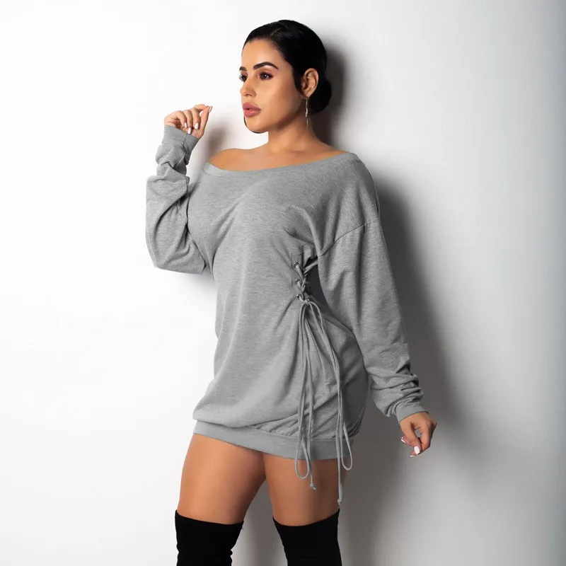 Special Offer BOOFEENAA sweat à capuche pour femme sweat robe Sexy décontracté côté à lacets épaules dénudées à manches longues Mini robes Streetwear C35 AF57 Discount 45% Today!