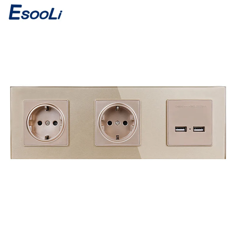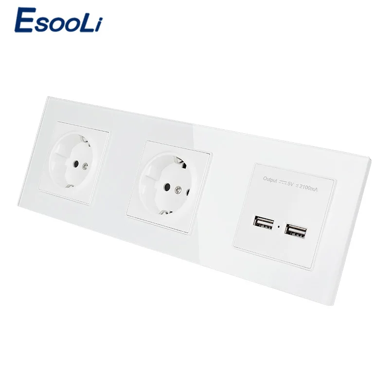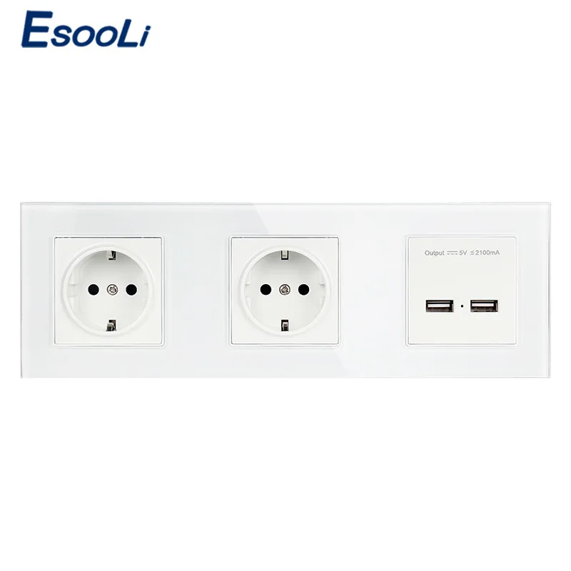 Special Offer Esooli mur panneau de verre en cristal Double prise 16A EU prise électrique Double USB Port de charge intelligent 5V 2A sortie couleur blanche Discount 50% Today!
