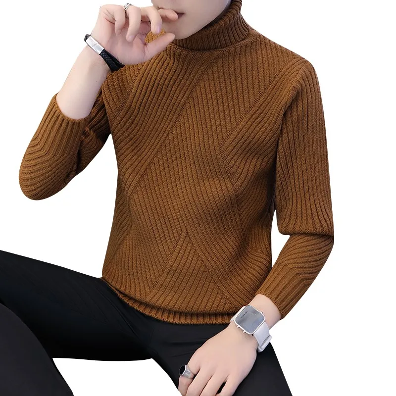 Product Name: Loldeal hiver épais chaud Pull hommes col roulé rayures irrégulières chandails coupe étroite Pull Sueter Hombre tricots Pull blanc