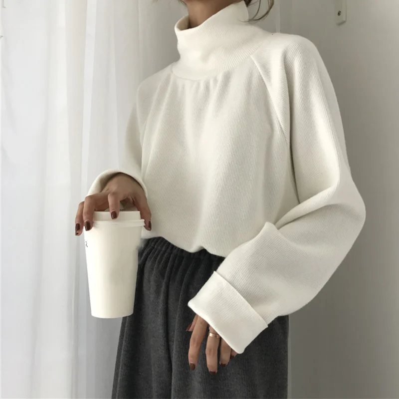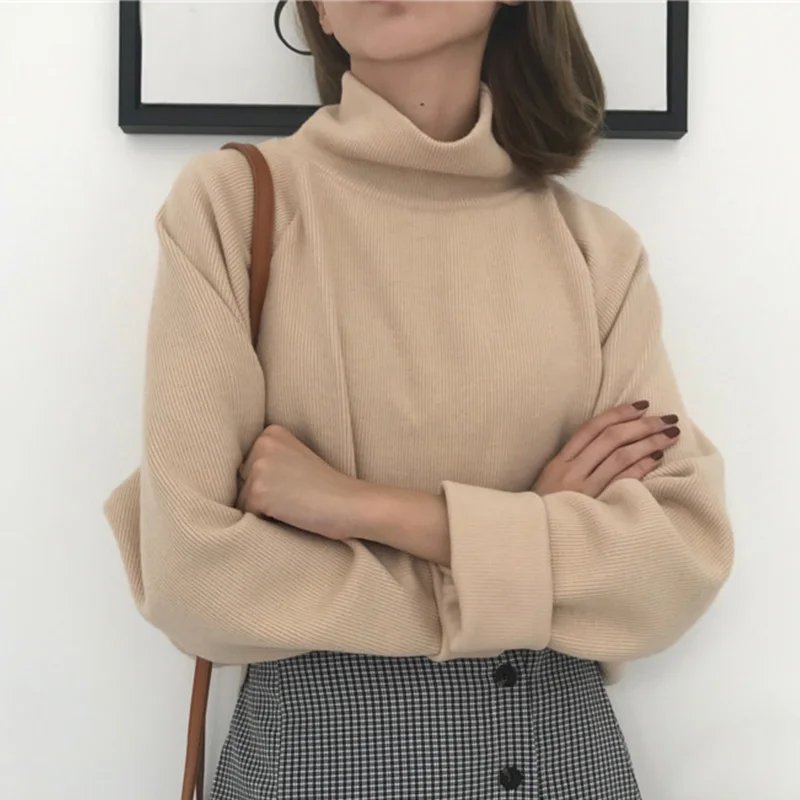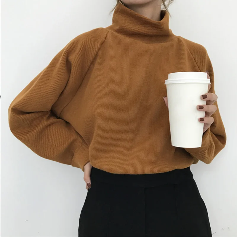 Product Name: Femmes coréen tricoté pulls pull col roulé chauve souris à manches longues femmes chandails 2019 automne hiver décontracté pulls dames