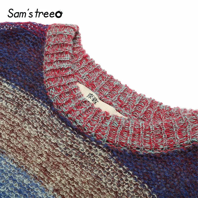 Product Name: Samstree Vintage rayé femmes chandails, 2019 automne mode o cou décontracté femmes hauts Streetwear corée lâche Femme chandails