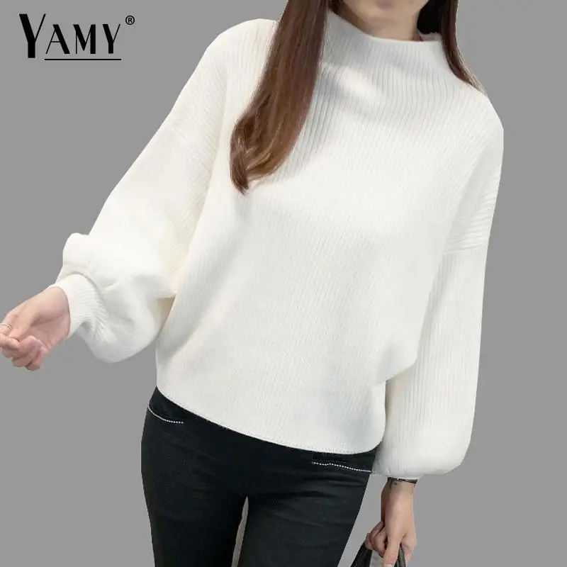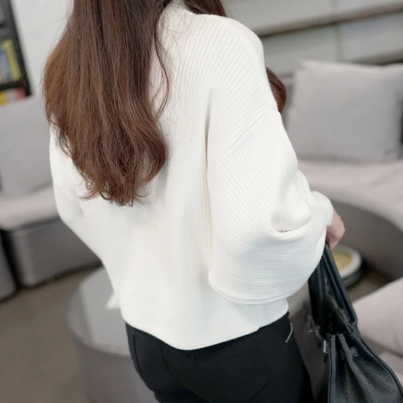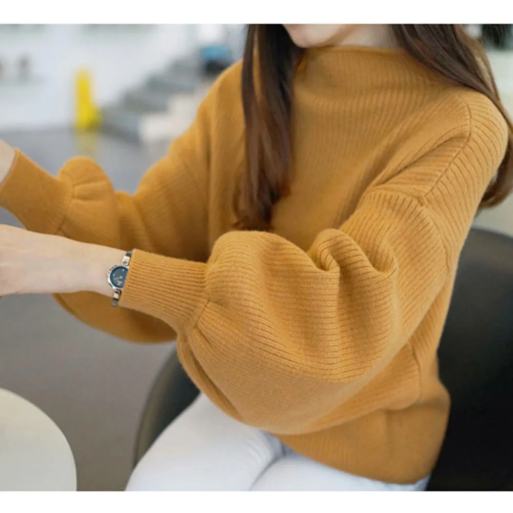 Product Name: Hiver femmes chandails mode rouge blanc col roulé lanterne manches pulls en vrac tricoté chandails femme pull hauts 2019
