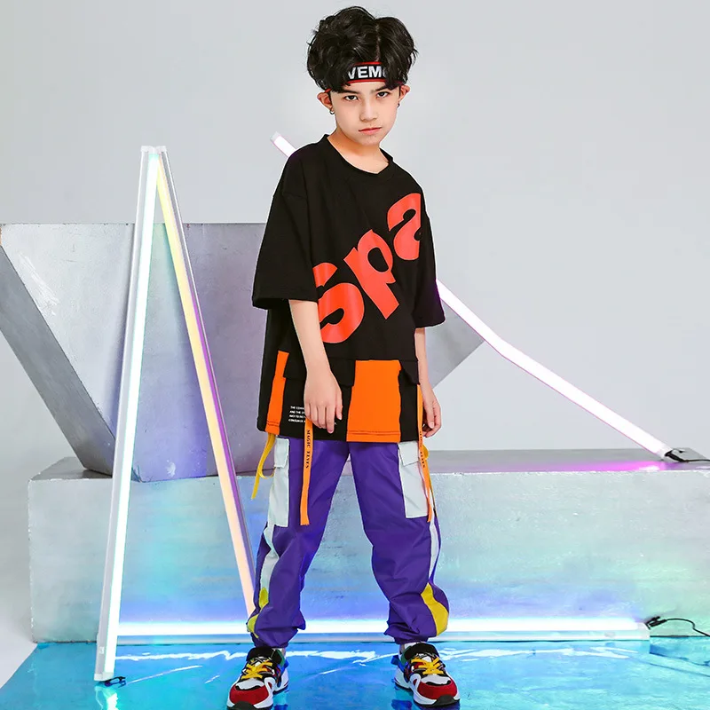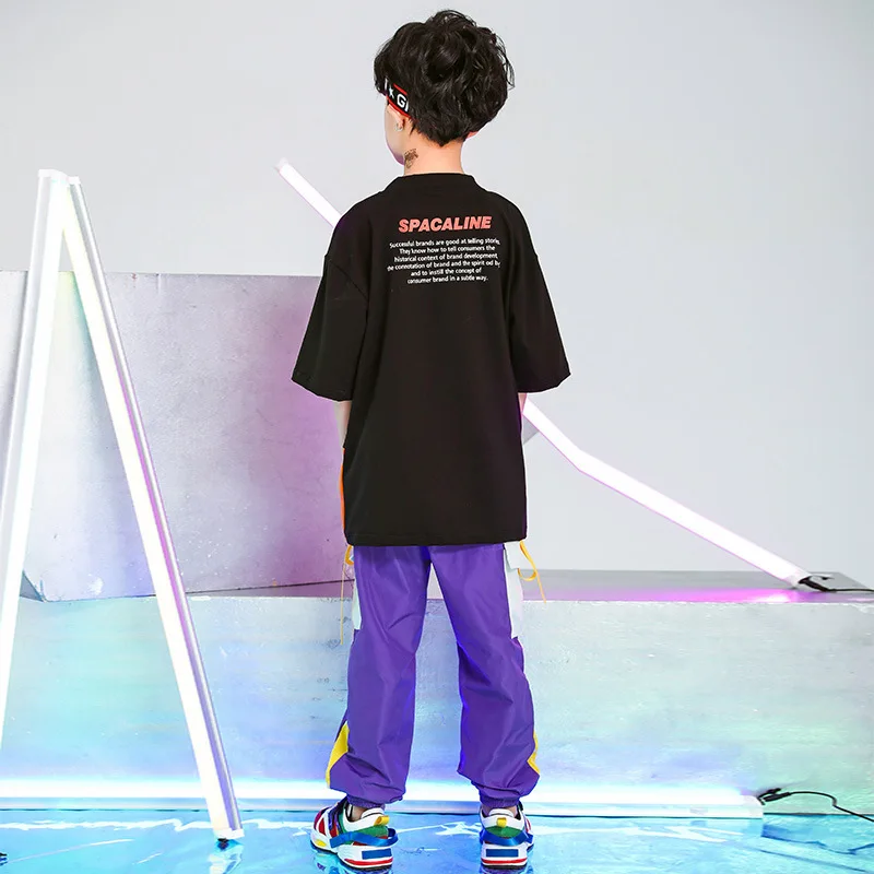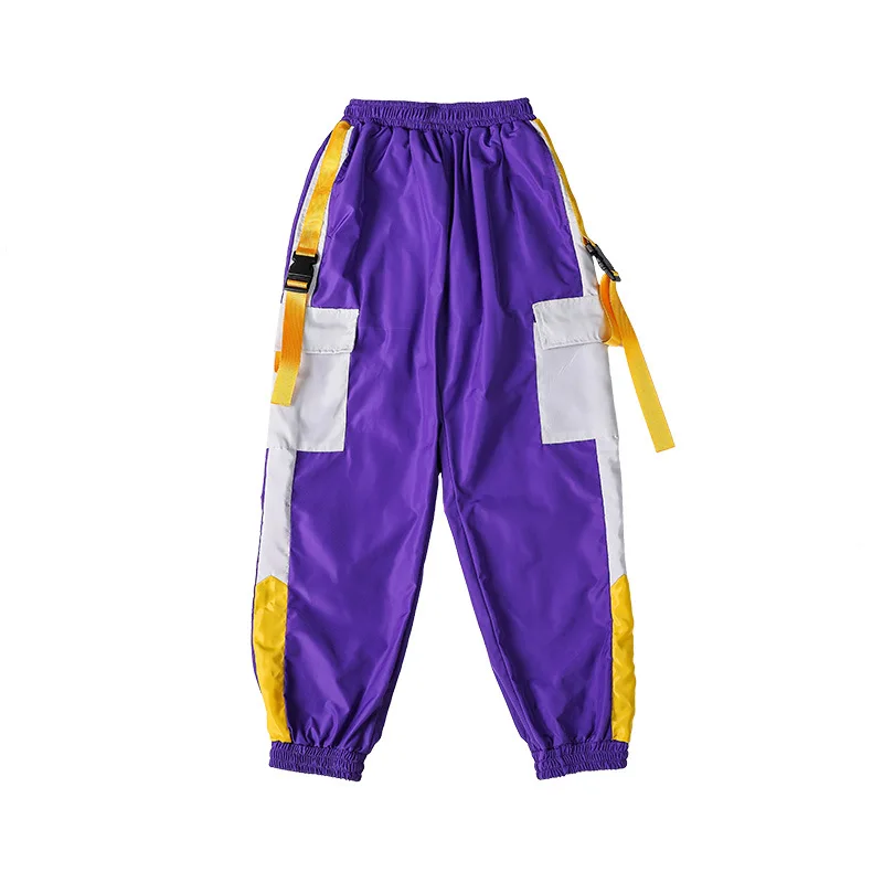 Product Name: Enfants adultes Costumes collier en perles violet blanc poches lambrissées patchwork jaune rayure épissé jazz Harem Hip Hop danse pantalon