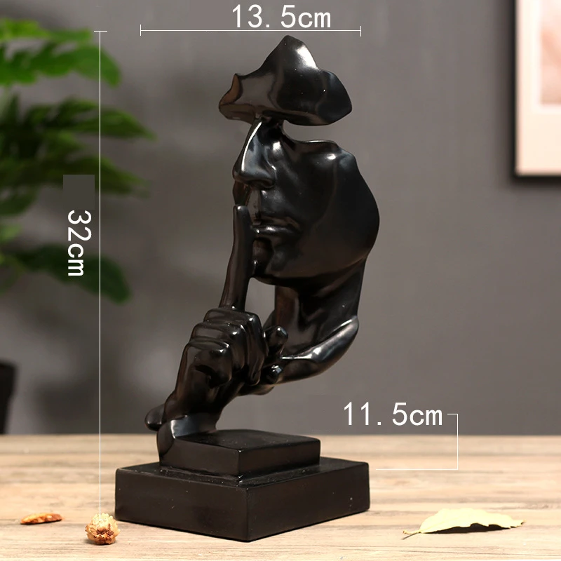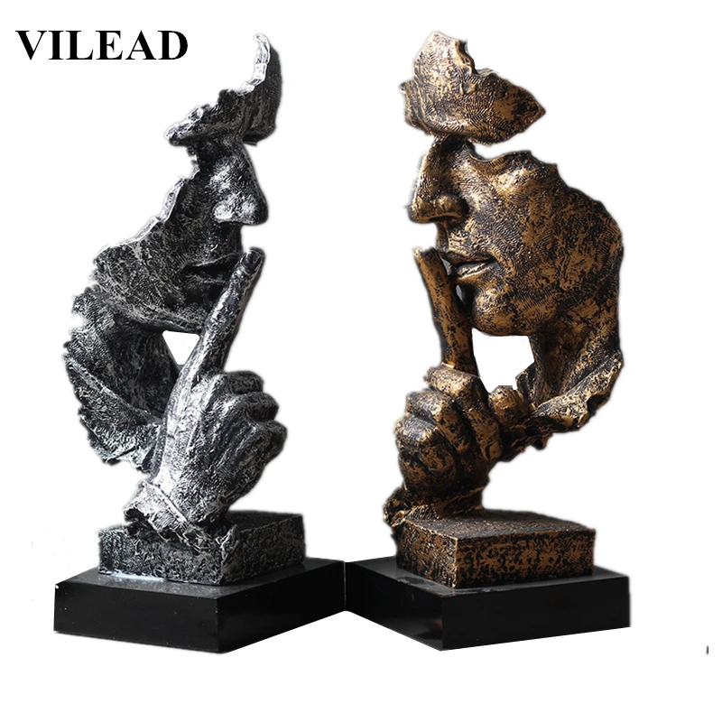Special Offer VILEAD 32cm résine Silence est or masque Statue abstraite ornements Statuettes masque Sculpture artisanat pour bureau Vintage décor à la maison Discount 60% Today!