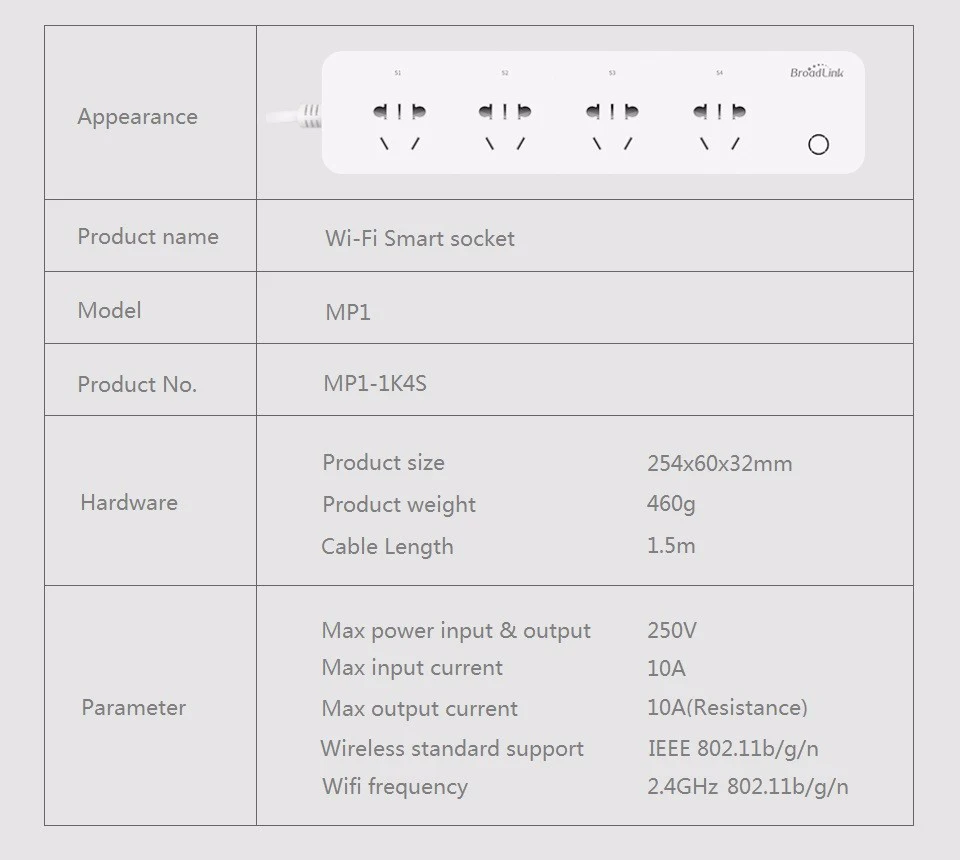 Product Name: BroadLink MP1 prise de multiprise intelligente contrôlable séparément WiFi prise intelligente 4 prises de courant pour l automatisation intelligente