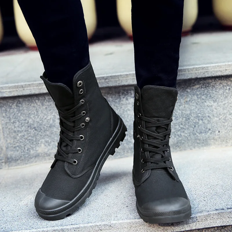 Special Offer Tous les hommes noirs chaussures nouvelle mode haut De gamme baskets hommes décontracté toile chaussures garçons Zapatos De Hombre militaire bottes Tenis Masculino Discount 32% Today!