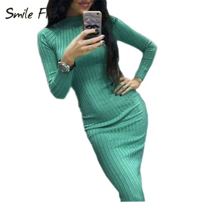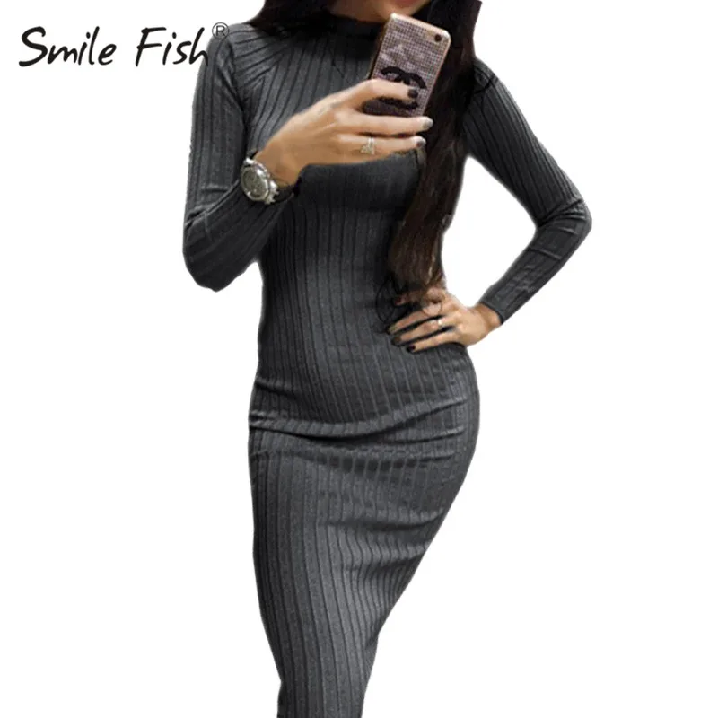 Special Offer Femmes élégantes Robe Midi automne à manches longues Stretch robes hiver moulante Robe tricotée bureau dames tricot côtelé Jurken GV424 Discount 15% Today!