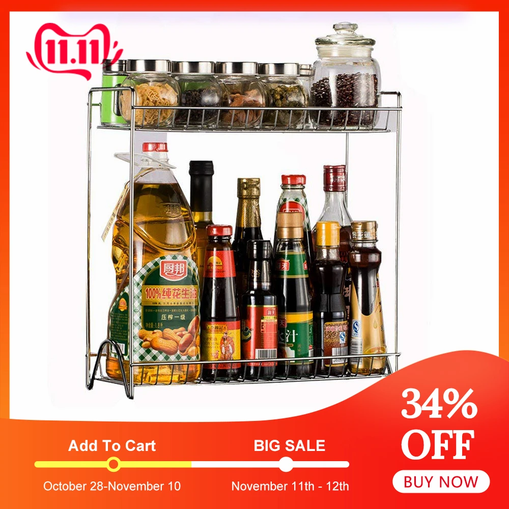 Special Offer HIPSTEEN deux couches en acier inoxydable détachable étagère de rangement support maison cuisine assaisonnement support organisateur argent Discount 27% Today!